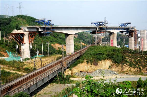 5月19日,漢十高鐵六里坪跨襄渝鐵路特大橋的轉(zhuǎn)體連續(xù)梁完成空中轉(zhuǎn)體成功對接。